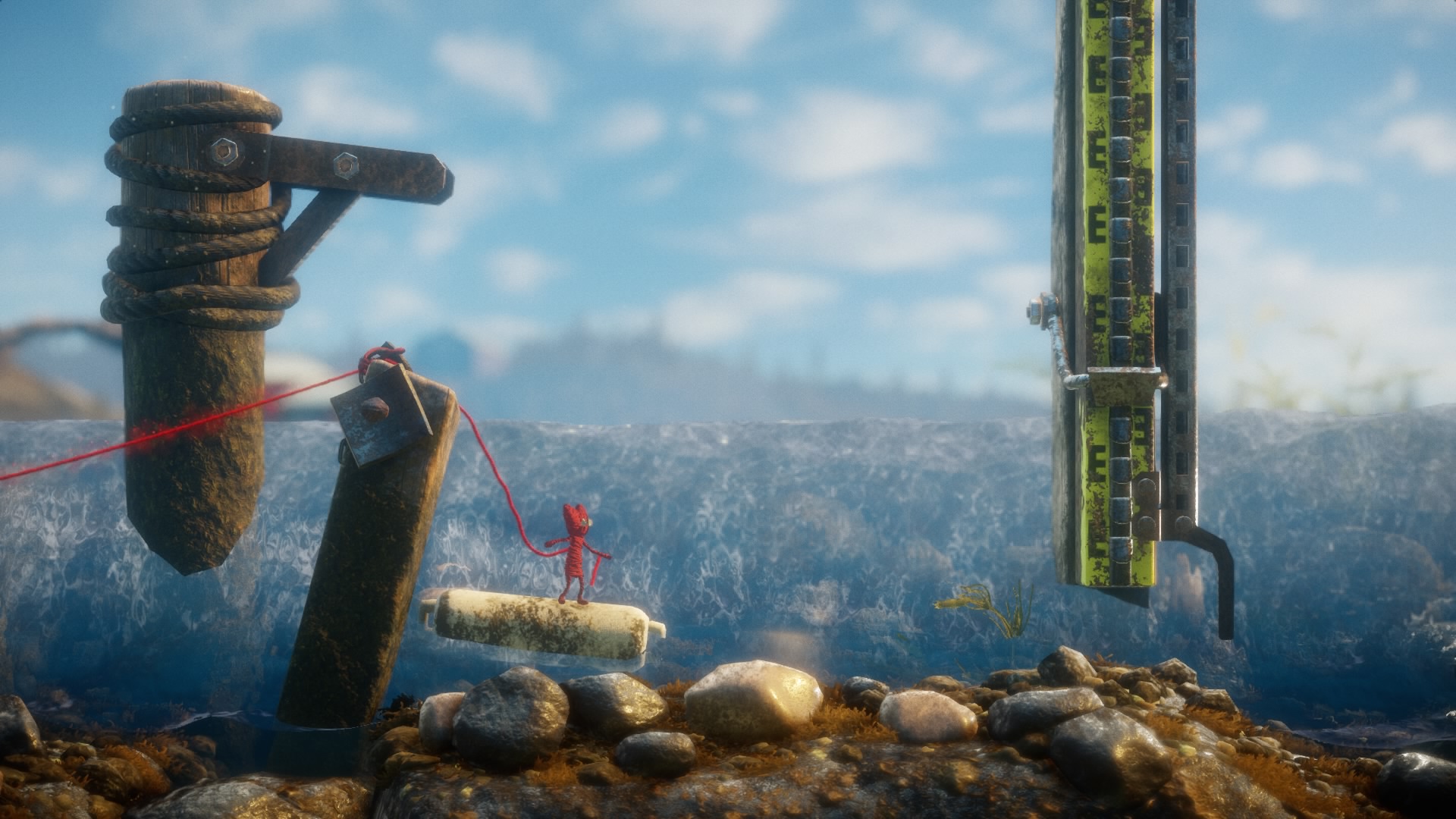 L’autre particularité de Unravel est sa direction artistique absolument sublime. Le jeu est pratiquement photo réaliste à travers l’application de très belles textures et des effets de lumière à tomber. Le jeu gère également très bien la profondeur de champ et la physique de la neige et de l’eau. Bref, le jeu propose une modélisation très belle et très réaliste des paysages suédois, de sa faune, de sa flore et de ses conditions climatiques.