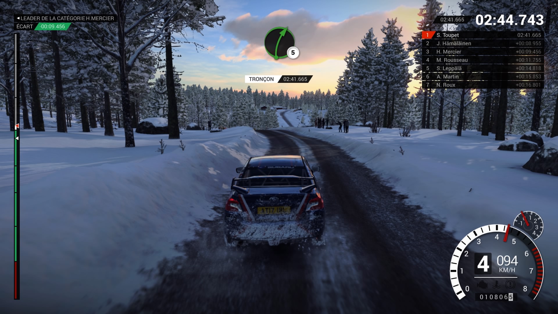 Au niveau des épreuves et des spéciales, les environnements sont fidèlement retranscrits et permettent de distinguer très clairement les réactions propres à chaque surface. Ainsi la voiture de comporte différemment selon qu’il s’agisse d’asphalte ou de terre par exemple. Les effets métro sont également impressionnants comme la pluie, la neige qui se dépose petit à petit sur la voiture ou le brouillard qui se lève parfois au beau milieu d’une course et oblige à adapter sa conduite !