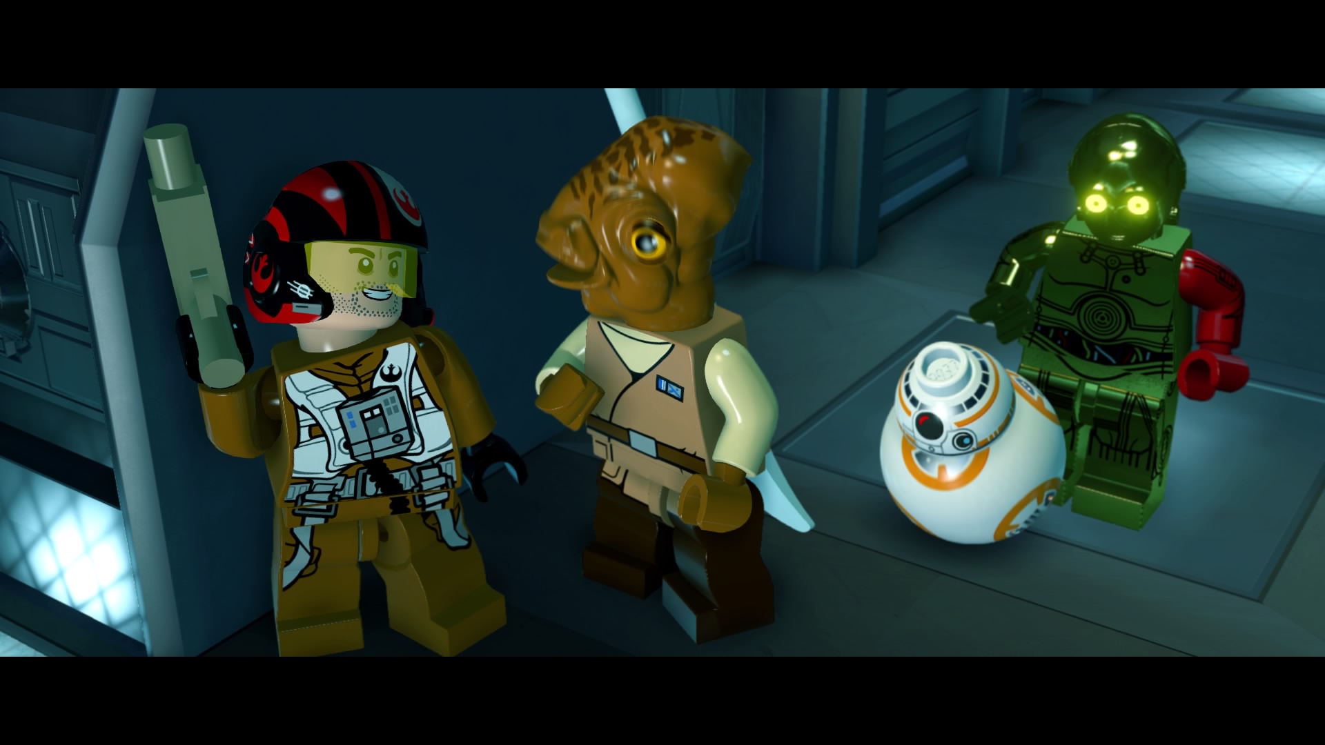 Ce n’est qu’au deuxième chapitre que les choses sérieuses commencent et qu’on incarne enfin Rey, Finn ou Poe Dameron dans leur lutte contre le Premier Ordre. Comme à l’accoutumée avec les jeux LEGO chaque personnage a ses caractéristiques propres. Certains tirent au Blaster, d’autres manient le sabre laser, Luke peut utiliser la Force et l’amiral Ackbar plonge dans des espèces d’aquarium pour en extraire des collectibles.